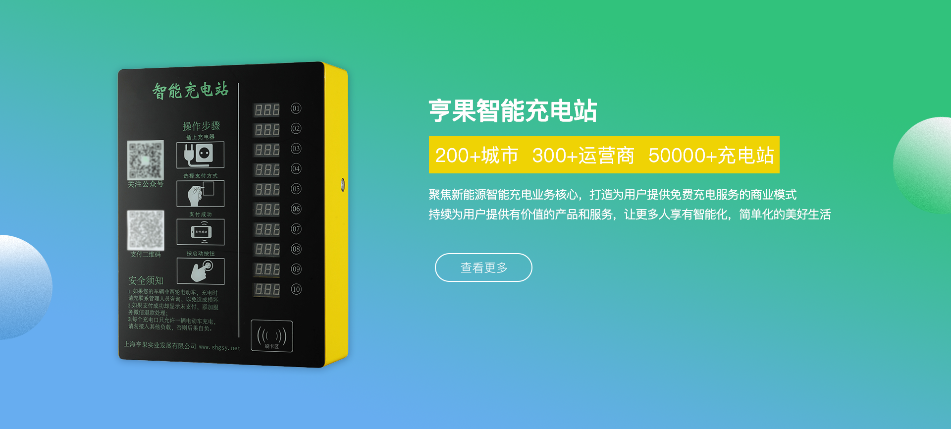 公司總部位于上海市青浦區(qū)趙巷新城經(jīng)濟(jì)開(kāi)發(fā)區(qū),專(zhuān)注于新能源智能充電操作系統(tǒng)、智能電動(dòng)車(chē)充電樁、充電樁行業(yè)運(yùn)營(yíng)管理平臺(tái)等多類(lèi)相關(guān) 產(chǎn)品的研發(fā)、設(shè)計(jì)、銷(xiāo)售和運(yùn)營(yíng),產(chǎn)品現(xiàn)已廣泛應(yīng)用于國(guó)內(nèi)各城市居民社區(qū)、高校、及商業(yè)綜合體車(chē)輛聚集區(qū)域及市政配套領(lǐng)域。